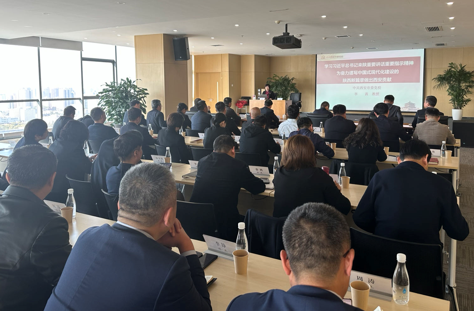 培訓(xùn)會(huì)上,李茜教授為我們作了“深入學(xué)習(xí)貫徹黨的二十大精神 傳承弘揚(yáng)延安精神”、“深入學(xué)習(xí)貫徹習(xí)近平總書記來(lái)陜考察重要講話精神”主題培訓(xùn),從更新、更深的視角,帶領(lǐng)大家再次重溫體悟延安精神的深刻內(nèi)涵,回顧習(xí)近平總書記歷次來(lái)陜情況,強(qiáng)調(diào)歷次講話要求中的一脈相承、一以貫之,從緊緊圍繞“五個(gè)突破”“四個(gè)著力”把握重要講話重要指示的精神實(shí)質(zhì),以及不斷實(shí)現(xiàn)西安高質(zhì)量發(fā)展的路徑等方面進(jìn)行了全面系統(tǒng)、深入淺出的闡釋和解讀。