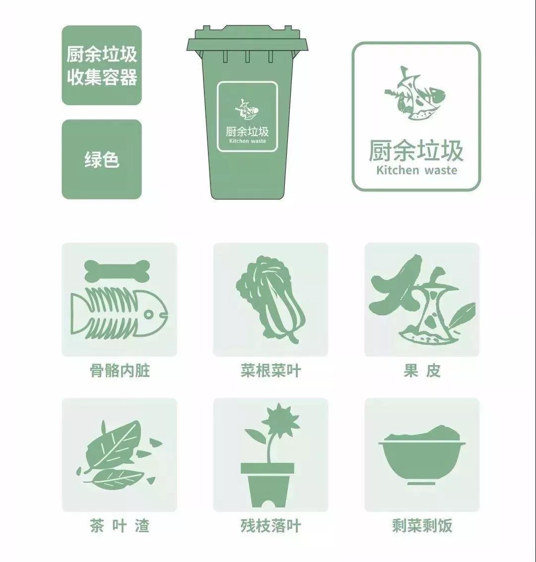 ?“有害垃圾、可回收物、餐廚垃圾、其他垃圾”其對(duì)應(yīng)垃圾桶顏色為紅、綠、藍(lán)、灰